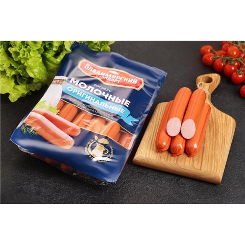 Сосиски принадлежат к качественным мясным продуктам категории B. Они изготавливаются по рецепту технологов Владимирского стандарта из трех видов мяса - свинины, говядины и курицы, что придает им насыщенный вкус. Особенностью этих сосисок является добавление молока, которое делает их еще более нежными и аппетитными.
