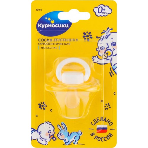 Соска-пустышка КУРНОСИКИ ортодонтическая латексная, с 0 месяцев, Арт. 13102 в магазинах Лента