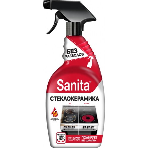 Спрей для чистки стеклокерамики SANITA Активная пена с мощным расщипителем жира, 500мл в магазинах Лента