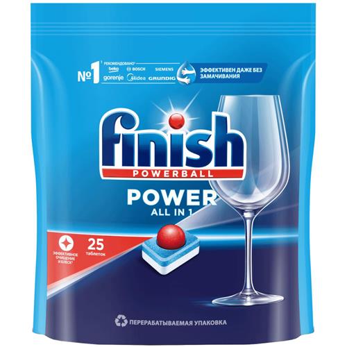 Средство Finish Powerball Power Aio для мытья посуды для посудомоечных машин таблетка, 25шт в магазинах Перекресток