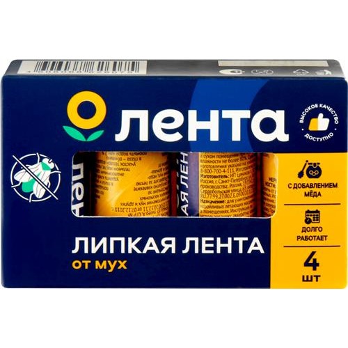 Средство инсектицидное ЛЕНТА Мухолов лента липкая, 4шт в магазинах Лента