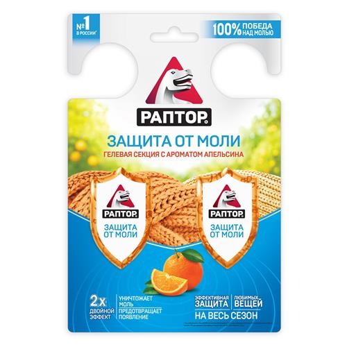 Средство от моли Раптор Гелевая секция Двойной эффект с ароматом апельсина, 2 шт (kastd) в магазинах Ашан