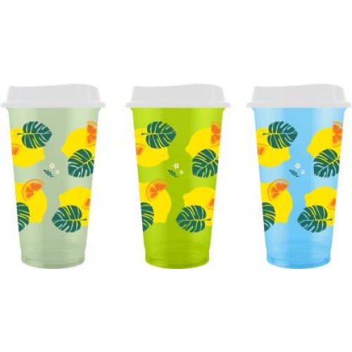 Стакан-тамблер Компания К пластиковый с декором и крышкой 400мл в магазинах Магнит