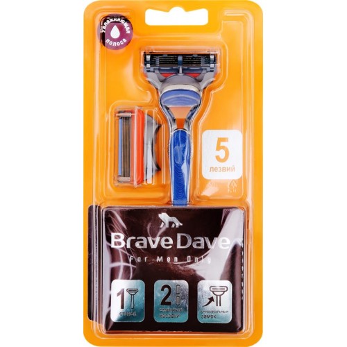 Станок для бритья BRAVE DAVE с увлажняющей полоской, +2 сменные насадки, 3шт в магазинах Лента
