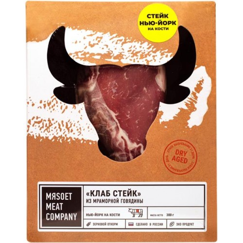 Стейк из мраморной говядины МЯСОЕТ Нью Йорк на кости, сухая выдержка, 300г в магазинах Лента
