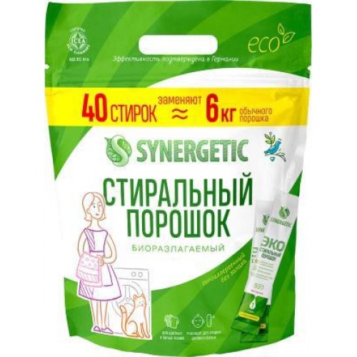 Стиральный порошок Synergetic универсальный суперконцентрат гипоаллергенный, 40 стирок по 1 кг, - это экологичный и эффективный продукт, разработанный для бережной стирки одежды и белья.
