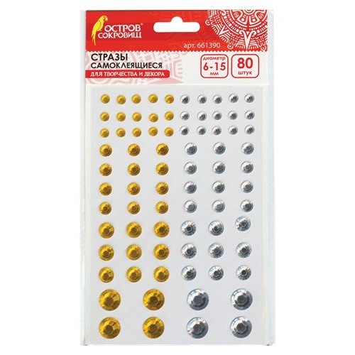 Стразы самоклеящиеся Остров Сокровищ золото/серебро круглые 6-15 мм, 80 шт (kastd) в магазинах Ашан