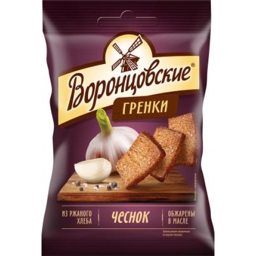 Товар на продажу - сухарики-гренки «Воронцовские» с чесноком, фасовкой 60 грамм. Производятся из высококачественной муки высшего сорта, что гарантирует их неповторимый вкус и воздушную текстуру. Секрет успеха гренок - в использовании натуральных ингредиентов и традиционных рецептов. Вкус чеснока добавляет приятный острый акцент, делая сухарики идеальным дополнением к салатам, супам, или как закуска к пиву. Упакованы в плотную пачку для сохранения свежести и аромата. Срок годности - 6 месяцев.