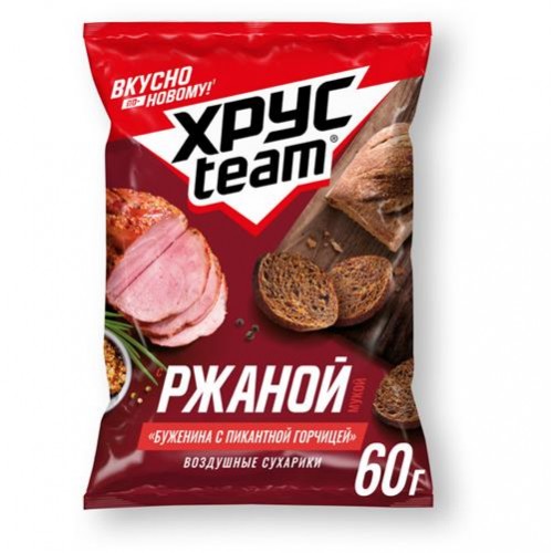 Сухарики Хрусteam воздушные с ржаной мукой Буженина с пикантной горчицей, 60г в магазинах Перекресток