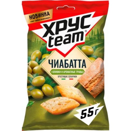 Сухарики Хрустим Чиабатта Оливки и ароматные травы 55г в магазинах Магнит