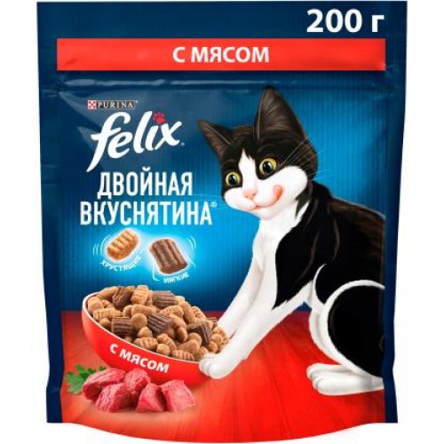 Сухой корм для кошек Felix Двойная вкуснятина с мясом 200г в магазинах Магнит