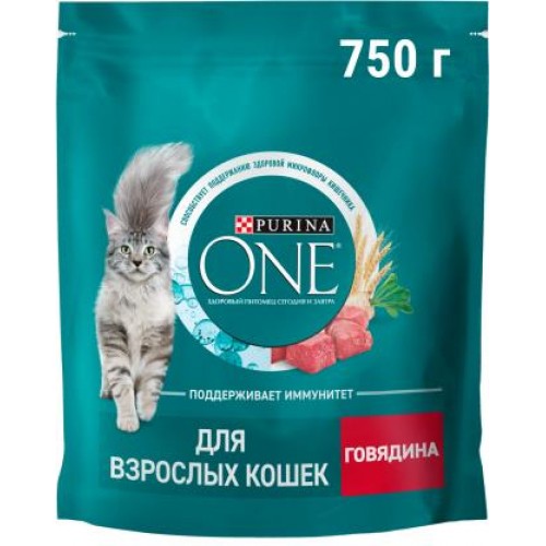 Сухой корм для кошек Purina ONE Adult с говядиной и цельными злаками 750г в магазинах Магнит