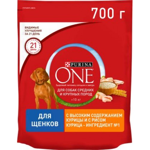Сухой корм для щенков Purina One с курицей и рисом в упаковке 700 г - это идеально сбалансированный корм для растущих щенков, созданный на основе натуральных ингредиентов.