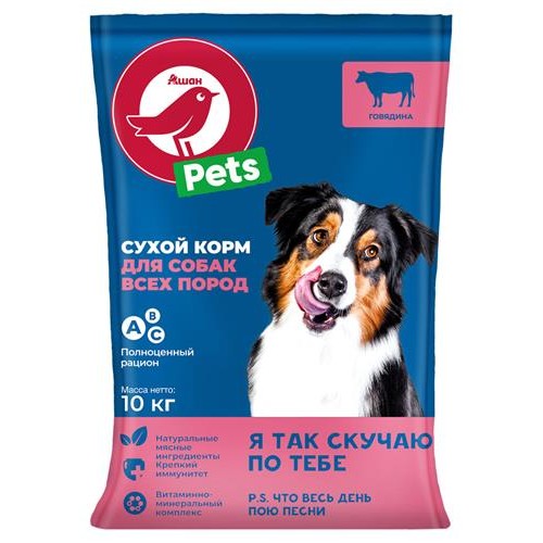 Сухой корм для собак АШАН Красная птица говядина, 10 кг (kastd) в магазинах Ашан