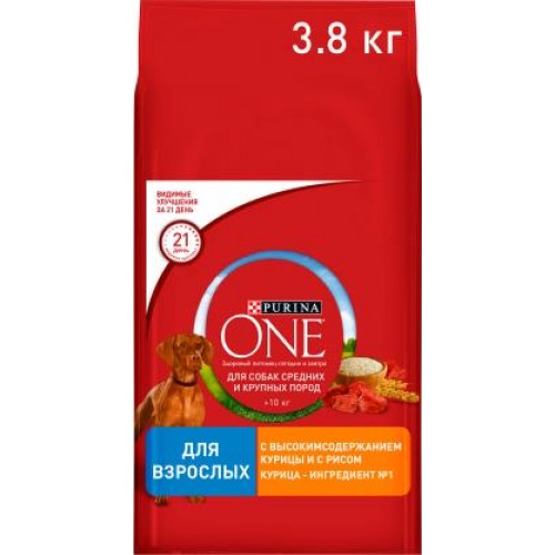 Сухой корм для собак Purina One с курицей и рисом 3.8кг в магазинах Магнит