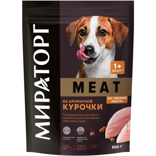 Сухой корм Мираторг Meat из ароматной курочки для взрослых собак мелких пород, 500г в магазинах Перекресток