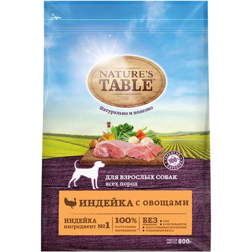 Сухой корм Nature`s Table для взрослых собак всех пород Индейка с овощами, 800г в магазинах Перекресток