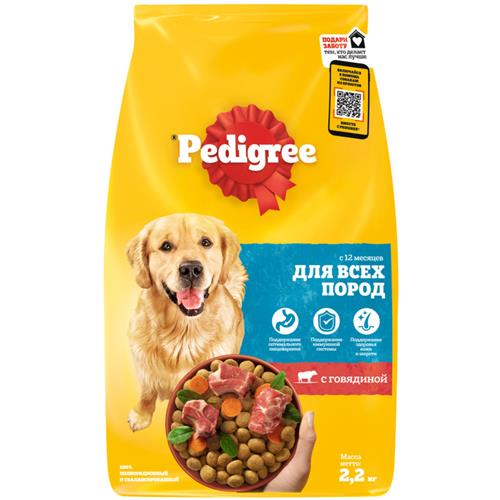 Сухой корм Pedigree полнорационный для взрослых собак всех пород с говядиной, 2.2кг в магазинах Перекресток