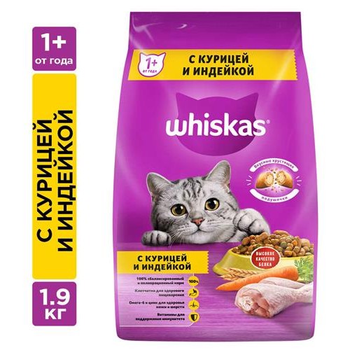 Сухой корм для кошек Whiskas курица индейка, 1,9 кг (kastd) в магазинах Ашан