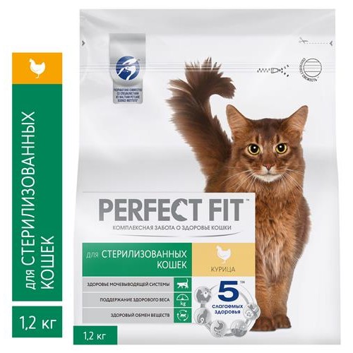 Сухой корм для стерилизованных кошек и котов PERFECT FIT курица, 1,2 кг (kastd) в магазинах Ашан