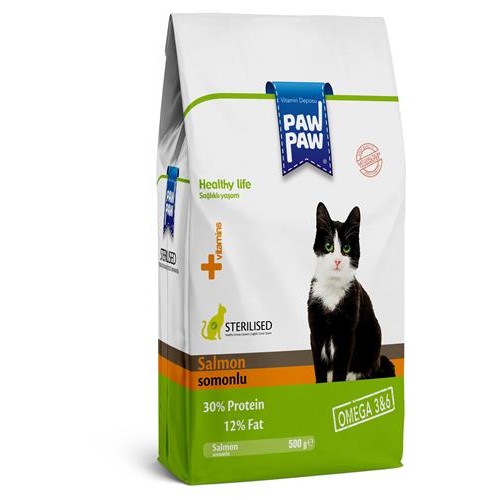 Сухой корм для стерилизованных кошек Pawpaw Sterilised Cat Food with Salmon с лососем, 500 г (kastd) в магазинах Ашан