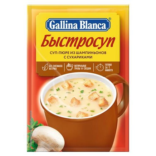 Суп-пюре моментального приготовления Gallina Blanca из шампиньонов с сухариками, 17 г (kastd) в магазинах Ашан