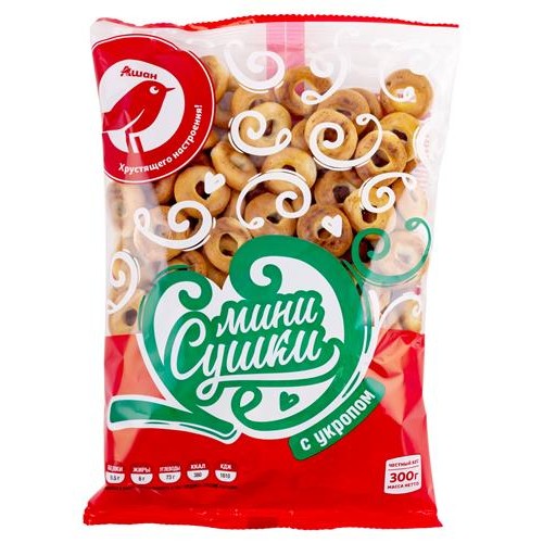 Сушки мини АШАН Красная птица с укропом, 300 г (kastd) в магазинах Ашан