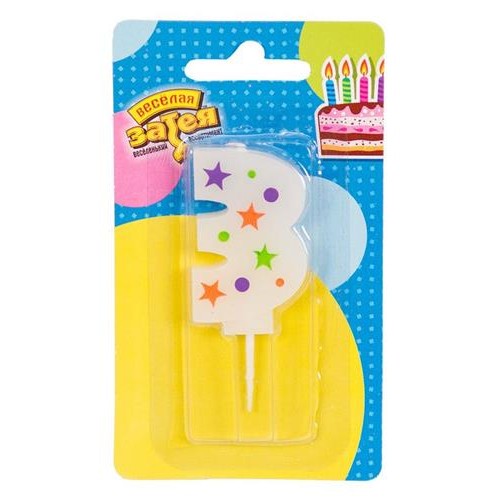Свеча Веселая затея цифра 3 Звезды, 5 см (kastd) в магазинах Ашан