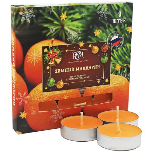 Свечи Русская Свечная Мануфактура Зимний мандарин чайные, 9шт в магазинах Перекресток
