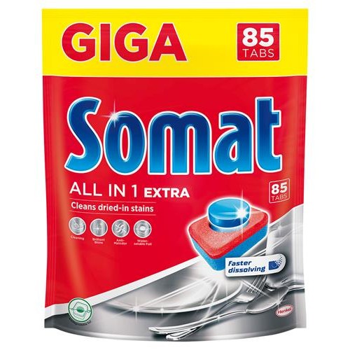 Таблетки для посудомоечной машины Somat 85 tabs All in One Extra, 85 шт (kastd) в магазинах Ашан