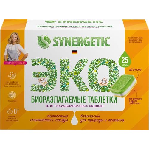 Таблетки для посудомоечной машины SYNERGETIC биоразлагаемые бесфосфатные, 25шт в магазинах Лента