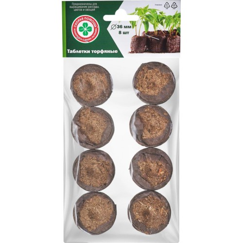 Таблетки торфяные СКОРАЯ ПОМОЩЬ d=36мм, 8шт в магазинах Лента