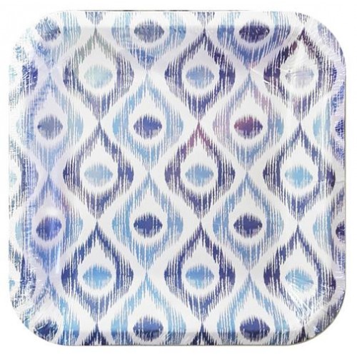 Тарелки одноразовые бумажные бело-голубой узор 20х20 см, 6 шт (kastd) в магазинах Ашан