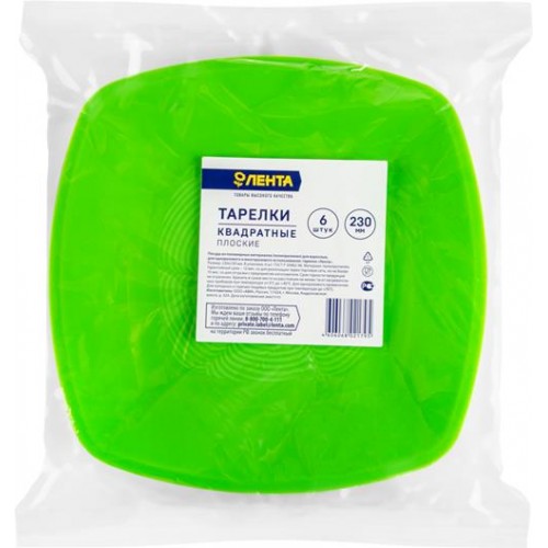 Тарелки одноразовые ЛЕНТА d=230мм квадратные, плоские, 6шт в магазинах Лента