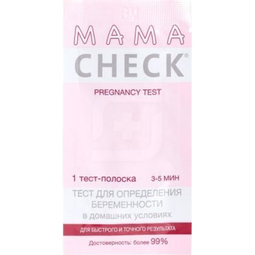 Тест для беременных Mama Check 1 шт немецкого производства предназначен для домашнего использования. В упаковке вы найдете специальную тест-полоску и подробную инструкцию, которая поможет правильно провести тест.