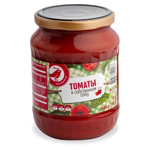 Томаты АШАН Красная птица в собственном соку, 680 г (kastd) в магазинах Ашан