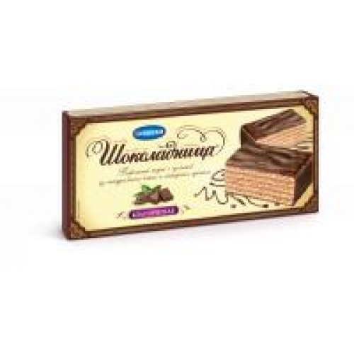 Торт Коломенская Шоколадница Классическая - это восхитительный десерт, состоящий из воздушных хрустящих вафельных слоев, покрытых темной глазурью. Уникальность этого торта заключается в нежной пралиновой начинке, которая прекрасно дополняет хрустящую текстуру вафли. Темная глазурь с волнистой рябью придает торту легкий терпкий вкус, делая его идеальным для настоящих гурманов.