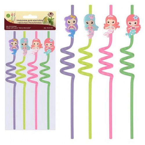 Трубочки для коктейля Мультидом Веселые русалочки, 4 шт (kastd) в магазинах Ашан