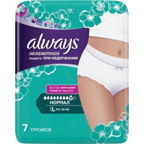 Трусы урологические Always Незаметная защита Нормал р. L 7шт в магазинах Магнит