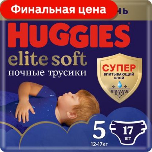 Трусики-подгузники Huggies Elite Soft Ночные размер 5 12-17кг 17шт в магазинах Магнит