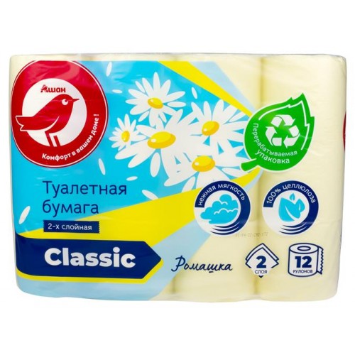 Туалетная бумага АШАН Красная птица с ароматом ромашки 2 слоя, 12 рулонов (kastd) в магазинах Ашан