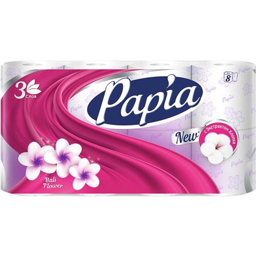 Туалетная бумага ПАПИЯ балийский цветок, 3 слоя, 8 рулонов в магазинах Авоська