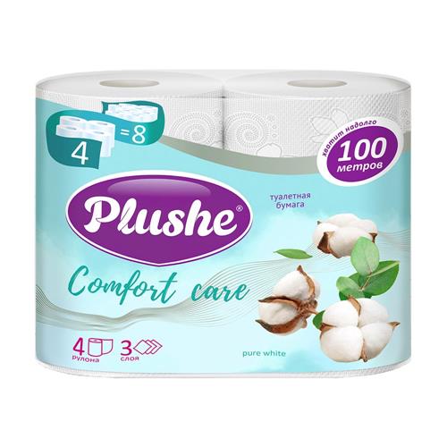 Туалетная бумага Plushe Comfort Care, 3 слоя, 4 рулона в магазинах FixPrice