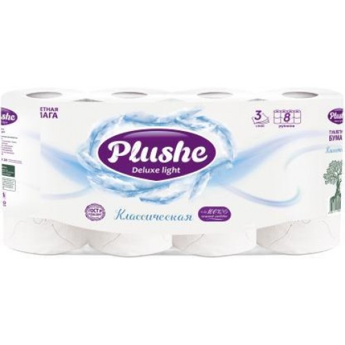 Туалетная бумага Plushe Deluxe Классик 3 слоя 8 рулонов в магазинах Магнит