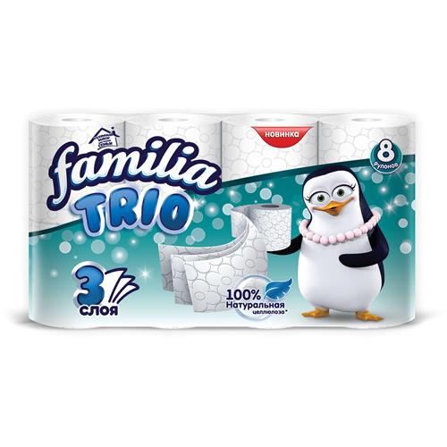 Туалетная бумага Трио ФАМИЛИЯ 3 слоя, 8 рулонов в магазинах Авоська