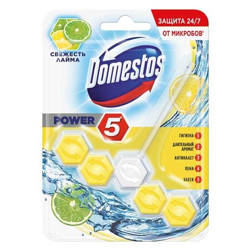 Туалетный блок подвесной Domestos Power 5 Свежесть лайма, 55 г (kastd) в магазинах Ашан