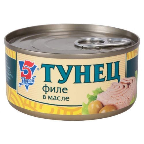 Тунец филе 5 Морей Скипджек в масле, 185 г (kastd) в магазинах Ашан