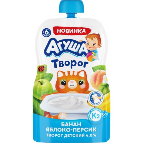 Творог детский АГУША Яблоко, персик, банан 4%, без змж, 80г в магазинах Лента
