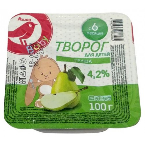Творог детский АШАН Красная птица груша 4,2% БЗМЖ, 100 г (kastd) в магазинах Ашан