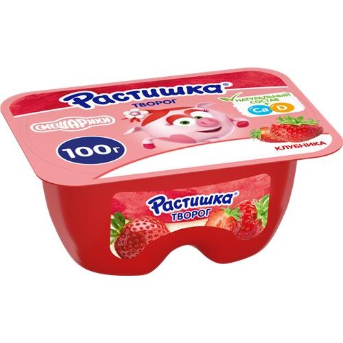 Творог для детей РАСТИШКА Клубника 3,5%, без змж, 100г в магазинах Лента
